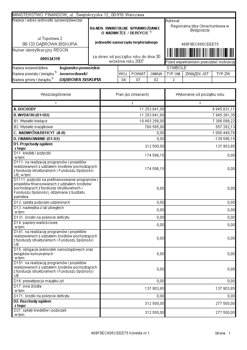 Kwartalne sprawozdanie budżetowe o nadwyżce/deficycie